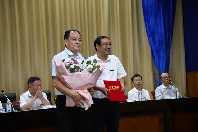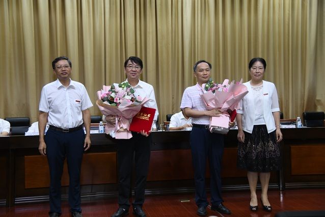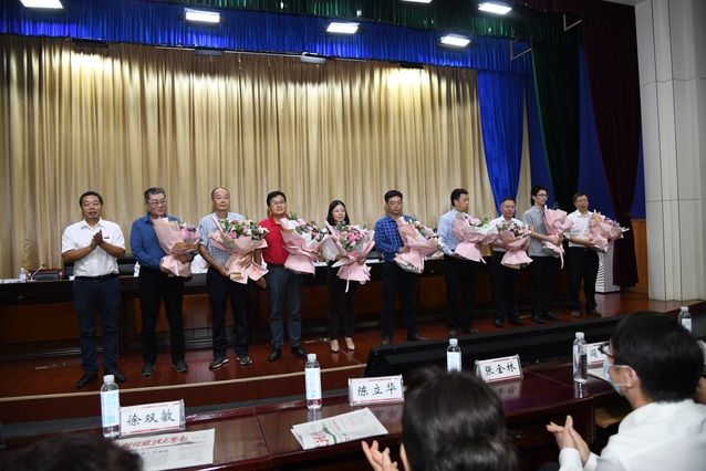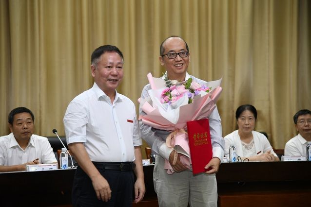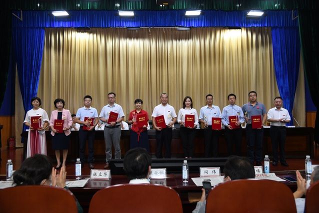 55名教职工本年度光荣退休。校党委副书记、纪委书记侯振发宣读2019-2020年荣休教职工名单,校长助理、法学院院长徐涤宇向退休教职工代表佩戴丝巾,对大家在中南大辛勤劳动和卓越贡献表示崇高的敬意和衷心的感谢。
