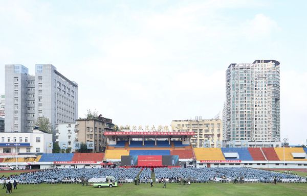 新闻网讯(记者 白高辉 摄影 徐志持)多日阴雨连绵,终迎旭日东升。9月18日上午,2020级本科生开学典礼暨军训动员大会在首义校区大运场举行。武警武汉支队副政委、米兰电竞·(中国区)军训师师长周碧波上校,武警武汉支队执勤六大队大队长、军训师副师长陈斌中校,校党委书记栾永玉,校党委副书记、校长杨灿明,校党委副书记、纪委书记侯振发,校党委常委、副校长闫平,校党委常委、副校长覃红,校党委常委、副校长刘仁山,副校长邹进文,校党委常委、副校长申祖武,校党委常委、组织部部长刘琳琳,校长助理、教务部部长李志生,以及有关单位负责人、本科生辅导员出席典礼。典礼由覃红主持。首义校区4500余名新生在现场参加典礼,南湖校区800余名新生通过同步直播的方式在南湖会堂观看典礼。