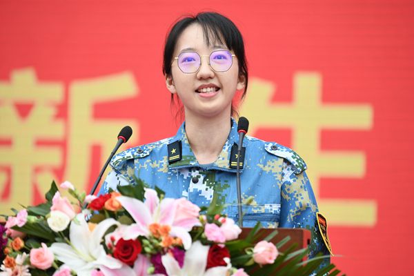 法学院肖婧雯从近200名报名新生中脱颖而出,成为“我要上典礼”活动海选出的本科生新生代表。她分享了自己关于“如何成为更好的中南大人”的思考与感悟,号召同学们志存高远、坚定信念,勇立潮头、勇敢拼搏,不忘初心、坚定笃行。作为新生代的中南大人,继续传承革命的风骨与气度,共筑民族复兴。