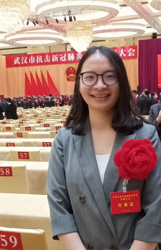 李育娟在武汉市抗击新冠肺炎疫情表彰大会现场