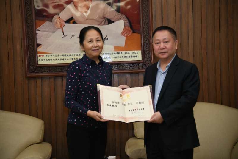 随后,杨灿明校长为应唯女士颁发了客座教授聘书。