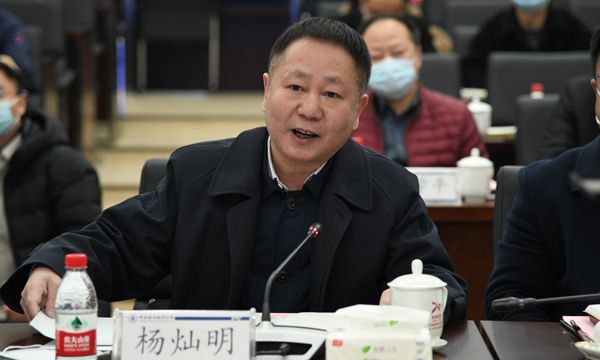杨灿明汇报学校抓好习近平法治思想的学习宣传贯彻落实情况:一是切实做好学习宣传,努力实现师生全员覆盖、业务全方位覆盖和全媒体覆盖;二是在人才培养的方案制定、课程建设、教材建设、留学生培养等方面持续融入习近平法治思想;三是在科学研究方面,建立习近平法治思想研究平台,开展专项课题立项,利用《学报》、《法商研究》等开辟专栏,完善“立格联盟”机制,注重学科交叉研究;四是深入推进文化传承与创新,挖掘我校红色基因,将习近平法治思想更好融入到学校文化基因中;五是始终坚持社会服务,聚焦国家战略、国家立法和经济社会发展,做好咨政服务和建言献策,为经济、社会、法治领域提供强大的理论支持和智力支撑。