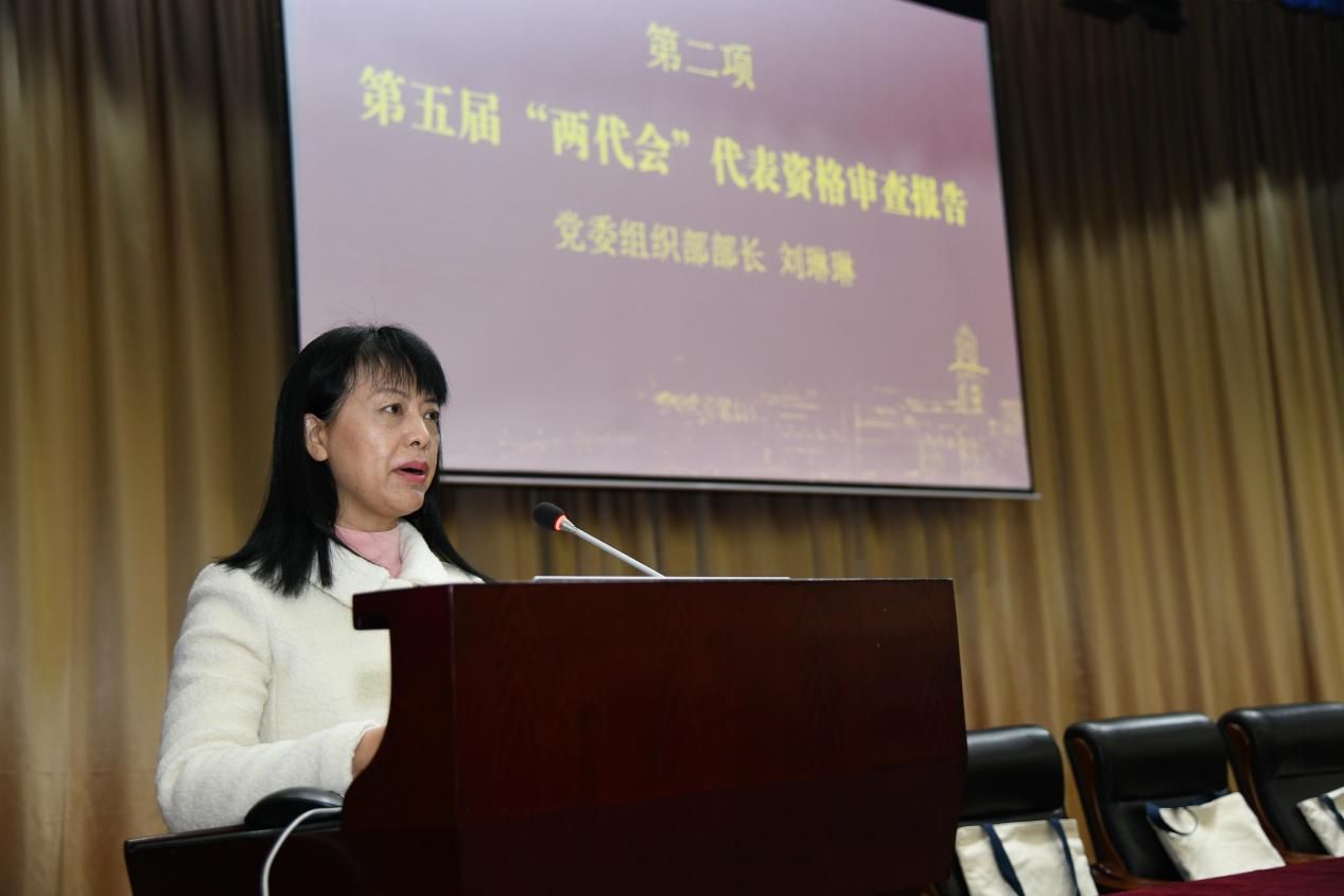 校党委常委、党委组织部部长兼统战部部长刘琳琳报告代表资格审查情况