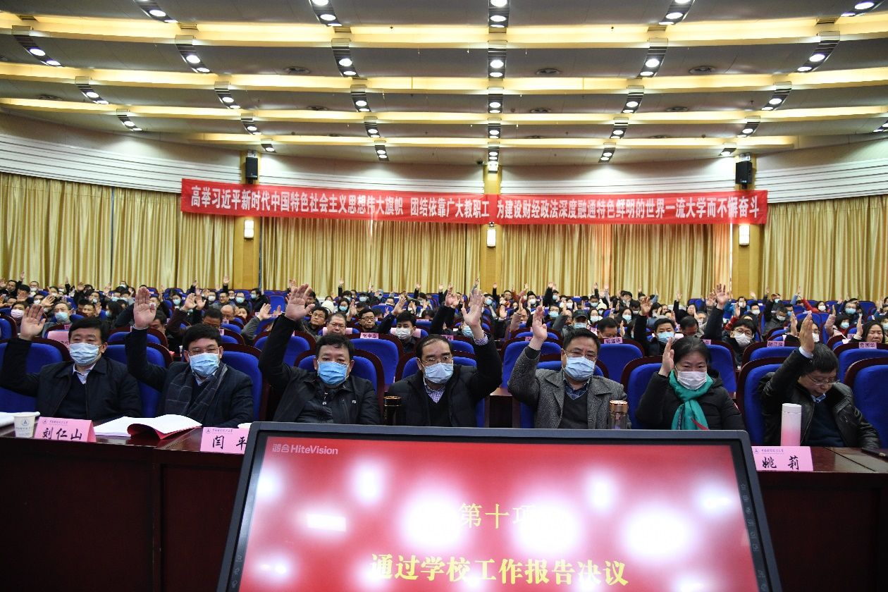 报告指出,2020年是极不平凡的一年,在新冠肺炎疫情所带来的巨大挑战下,全校上下一手抓疫情防控,一手抓事业发展。全力以赴,抓牢疫情防控和防汛救灾工作;知行合一,抓实习近平新时代中国特色社会主义思想的学习贯彻,设立“读懂中国”学习专栏,校领导、专家学者等累计撰写学习阐释理论文章140余篇;聚焦重点,抓细一流人才培养体系构建,获批国家级一流专业13个,入选首批国家级一流本科课程25门;对标对表,抓好“双一流”周期总结工作,7位专家评审后一致认为我校圆满实现建设周期预期目标;师资队伍建设取得新突破;崇法善治,抓紧治理体系和治理能力建设;提质增效,抓稳精准扶贫工作,新选派援派挂职干部人才7人参与援派工作,按期超额完成6个“200”等重点帮扶任务;压实责任,抓严新时代党建工作。