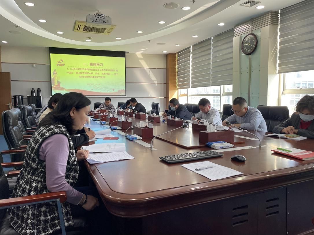 活动伊始,第一党小组刘娟同志带领大家领学了《习近平新时代中国特色社会主义思想学习纲要》(第十四章)“坚决维护国家主权、安全、发展利益——关于新时代坚持总体国家安全观;接着,由陈佳同志和马宁东同志分别领学了《习近平:坚持系统思维构建大安全格局 为建设社会主义现代化国家提供坚强保障》《中共中央政治局常务委员会召开会议 分析新冠肺炎疫情形势 部署从严抓好疫情防控工作》及相关扩展学习资料。