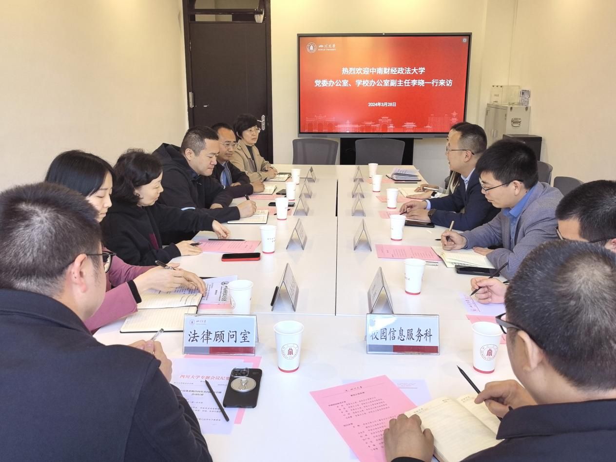 新闻网讯(通讯员:李盛)为进一步提升办公室工作管理服务水平,3月27日-28日,党委办公室、学校办公室副主任李晓带队前往西南交通大学、西南财经大学和四川大学,围绕办公室职能配置与岗位编制、目标任务及考核办法、OA系统建设、电子印章、综合服务保障、信息报送、值班值守、政策研究等工作进行调研。