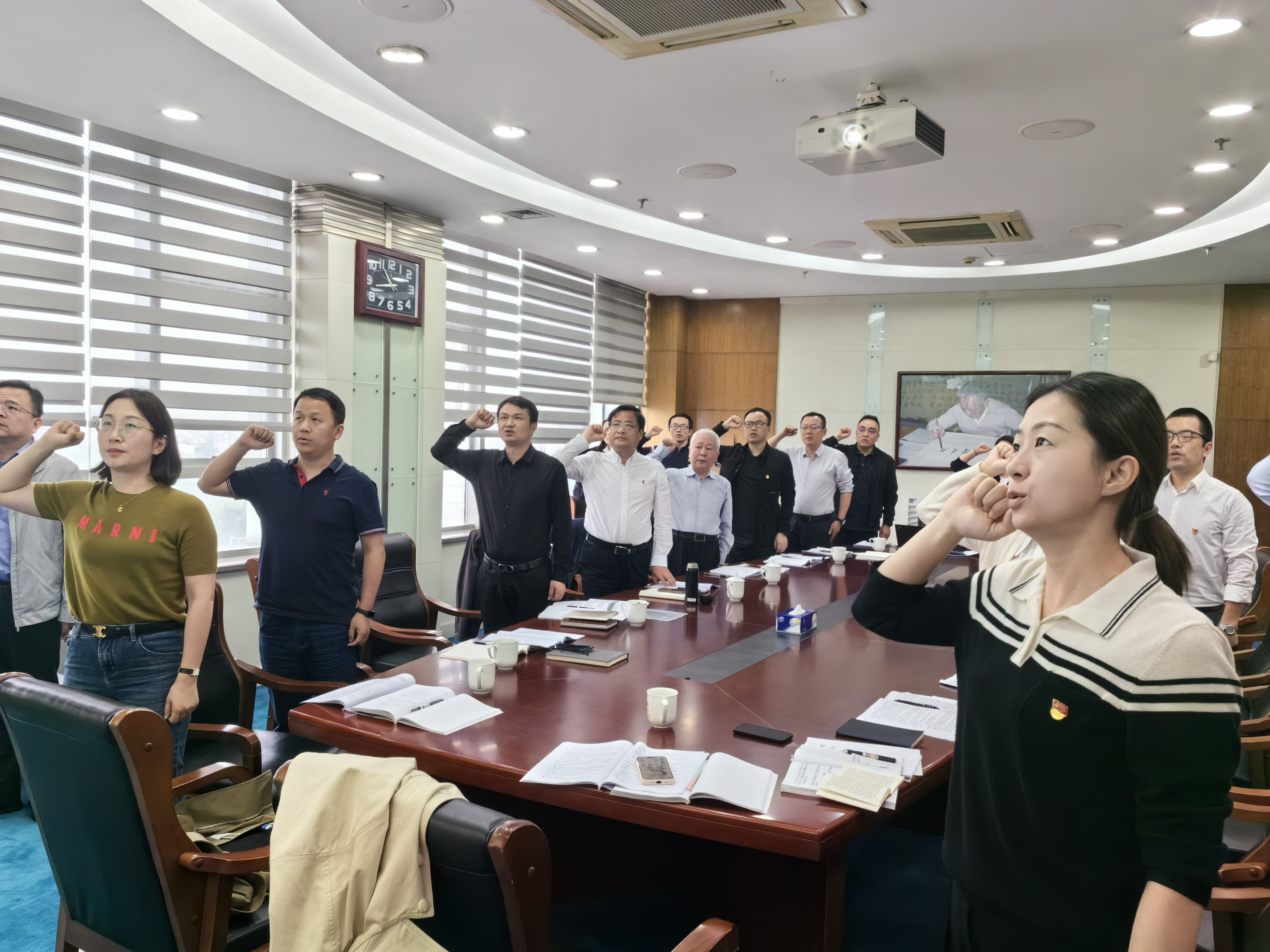 随后,刘翔同志领读《中国共产党章程》总则部分,万思露同志带领全体党员举起右拳,重温入党誓词。