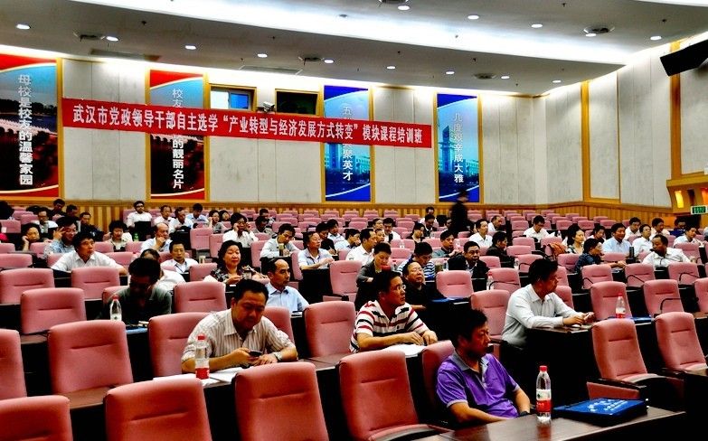 2011年10月12日,为期4天的武汉市党政领导干部自主选学“产业转型与经济发展方式转变”模块课程培训班在文汇楼举行开班仪式。来自武汉市各区、市直各单位近150名市管领导干部、后备干部参加了此次培训。本次自主选学培训由中共武汉市委组织部主办、工商管理学院承办。武汉市委组织部干部教育处陈兴平处长、MBA学院汪海粟院长、工商管理学院党委李晓青书记、院长陈池波教授、继续教育学院彭晓霞副院长等负责人以及院培训部全体老师出席了开班典礼。
