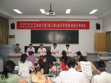6月21日上午,湖北省远安县(第三期)财政干部知识更新培训班开学典礼在首义校区文津楼举行。湖北省财政厅人教处潘和新处长、湖北省远安县财政局陈才华局长、曾祥春副局长、我校继续教育学院谢进城院长、彭晓霞副院长等出席了开学典礼。彭晓霞副院长主持了开学典礼。