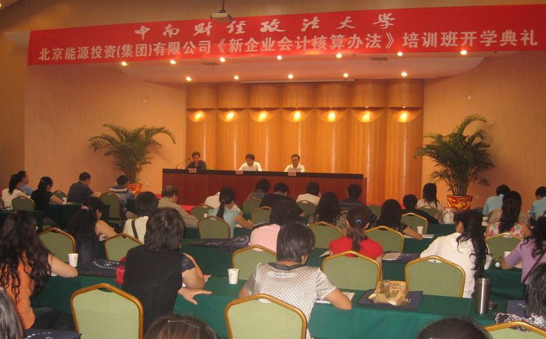 按照北京市国资委要求, 北京能源投资(集团)有限公司(以下简称京能集团)已经于2008年1月1日起全面执行新企业会计准则,并结合《企业会计准则》修订了京能集团《企业会计核算办法》。为使集团各级财务工作人员准确掌握新《企业会计核算办法》的主要内容,熟练地将其运用于财务管理实践工作中,京能集团组织公司各部室、全资及控股企业在岗财务人员80多人于9月22日来到我校进行为期一周的《企业会计核算办法》培训。