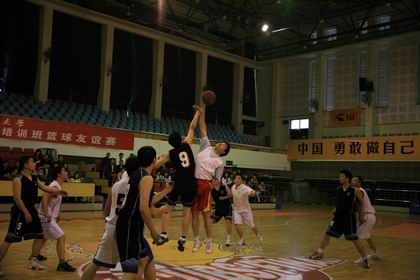 3月31日晚,校南湖体育馆人声鼎沸,气氛热烈。省财政系统青年干部业务知识培训班与省国税系统业务骨干培训班篮球友谊赛正在紧张进行。