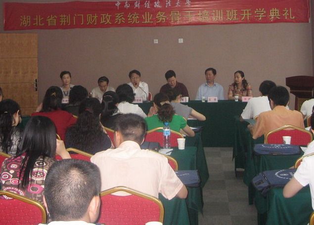 5月5日,首批来校参加培训的是湖北省荆门财政系统培训班学员。这是继07年春季我校为湖北省财政厅举办全省科级干部培训班 、湖北潜江市财政局、江夏区财政局干部培训班后又一批来到我校校进行为期两个月知识更新培训的财政干部。省财政厅人教处处长潘阳军先生出席了培训班的开班典礼并代表省厅做了重要讲话。荆门市财政局局长张尚贵先生用“荆门财政的明天靠你们,你们的明天靠知识”勉励学员珍惜来之不易的学习机会。学员代表也表示一定努力学习,不负领导的重托。