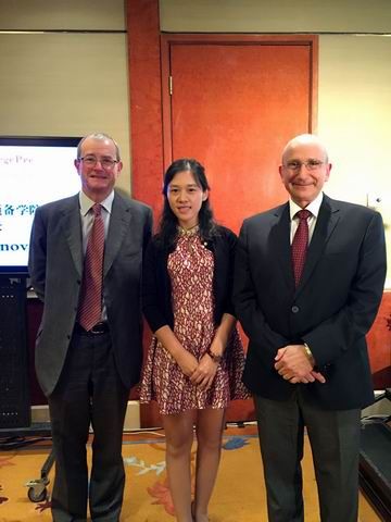 2015年10月15至16日,受雅思官方邀请,米兰电竞·(中国区)继续教育学院国际项目办郑博老师作为教师代表参加了在北京举行的剑盟雅思预备学院揭幕仪式和剑桥雅思机考模考两场新闻发布会。剑桥大学考试委员会CEO Simon Lebus教授、剑桥大学外语考试部CEO、被誉为雅思之父的Michael Milanovic教授、剑桥大学自动化语言教学和评估研究院首席研究员Paula Buttery博士等出席了发布会并致辞。