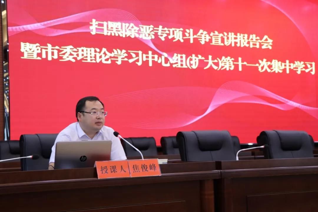 温州市人民检察院副检察长、我校刑事司法学院焦俊峰副教授赴石首市为市委理论学习中心组(扩大)会议作《集中攻坚,推动扫黑除恶专项斗争向纵深发展》专题辅导讲座。宣讲报告会上,焦俊峰副教授指出当前黑恶势力犯罪的新动向,即向政治领域渗透,企图操控、把持基层证券,向新行业、新领域扩张,追求非法利益最大化,向隐蔽化转型,逃避打击能力增强。并围绕扫黑除恶专项斗争的重大意义、当前扫黑除恶专项斗争的新特点、纵深推进扫黑除恶专项斗争工作的要求三个方面进行了系统讲解和阐述。