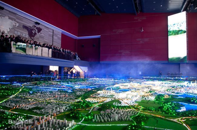 【3F】三层空间以总体规划模型大厅为核心,为全馆的高潮,主要展示武汉“建设国家中心城市”战略目标和建设“两型”社会、东湖国家自主创新示范区两大国家战略。
