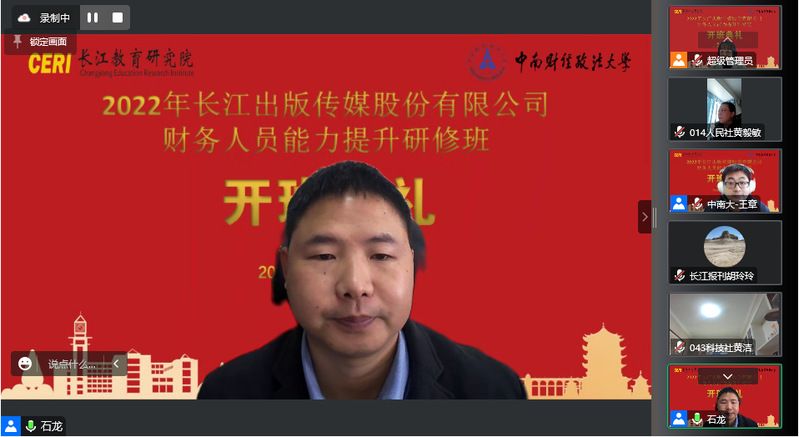 石龙在开班仪式上致辞。他代表学校对参训学员表示热烈欢迎,向长江出版传媒对我方的信任表示感谢。他围绕红色历史和办学特色对学校培训教育概况以及培训班筹备情况进行介绍。他表示,中南大作为一所财经、政法融通的“双一流”高校,始终将财务管理等优势学科成果作为培训服务的核心内容输出。在当前时期能够圆满承办此次培训,做到教师教辅人员到岗到位,培训单位认可,充分体现了学校培训教育深厚的办学能力。