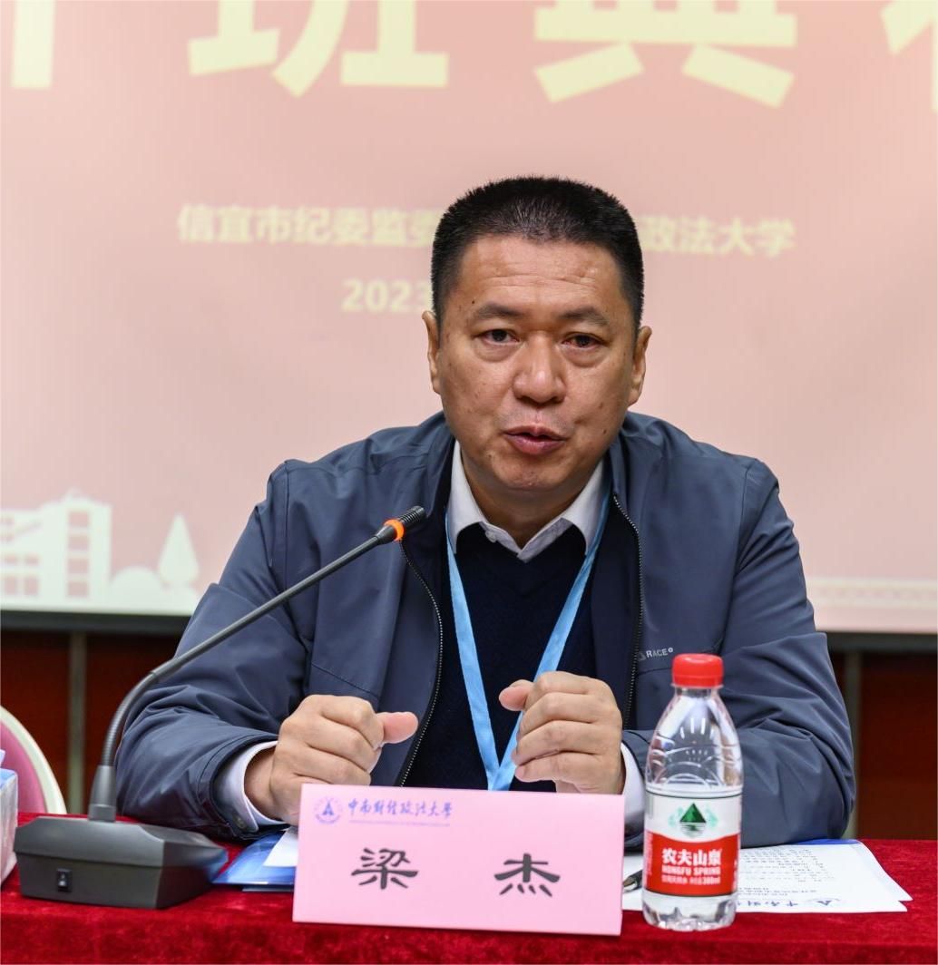 在开班仪式上,向传殿对信宜市纪委监委的领导和全体参训学员表示热烈的欢迎,并就学校历史沿革、学科特色、社会服务和培训班筹备等情况进行了介绍。他表示学校始终秉持“由党创办、建校为党、成长为国、发展为人民”的红色基因,通过打造“经、管、法”深度融通的学科特色和“产、学、研、培”社会服务模式,持续为社会经济发展贡献智慧与力量。他强调本次培训班主题鲜明、内涵丰富、重点突出、筹备充分,学员们要以此次培训为契机,充好电、蓄好能、强好“筋骨”,铸成忠诚干净担当、敢于善于斗争、自身正自身硬的纪检监察铁军。