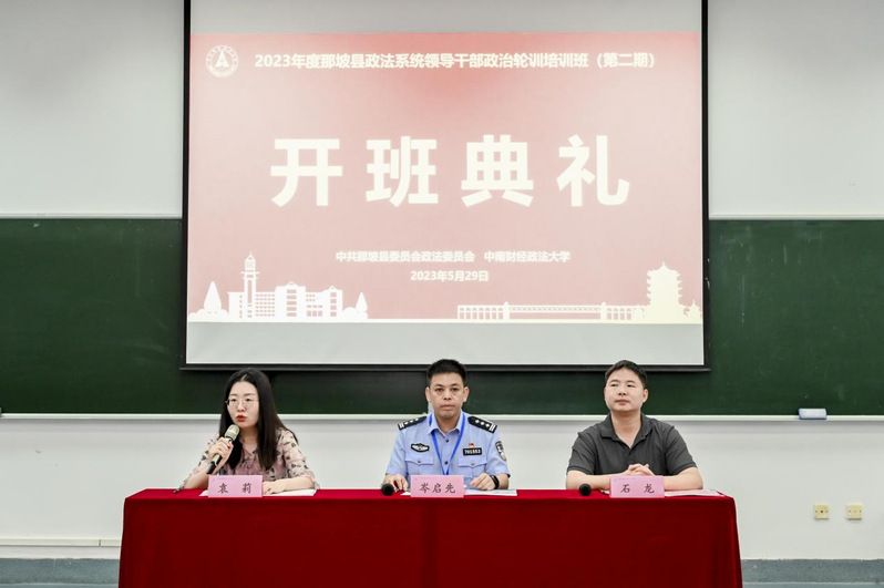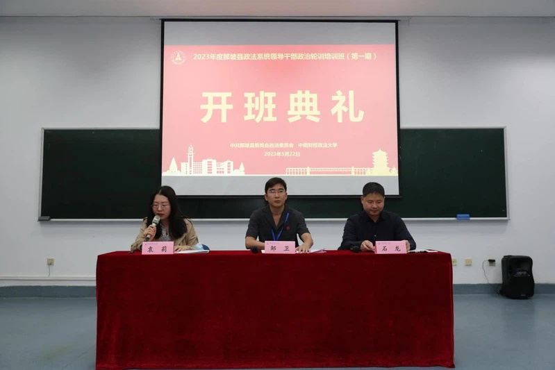 (通讯员 王章)5月22日至6月2日,由中共那坡县委员会政法委员会主办、我校承办的2023年度那坡县政法系统领导干部政治轮训班(共两期)在首义校区顺利举行。那坡县人民法院党组书记、院长邹卫,那坡县公安局党委副书记、政委岑启先,学校继续教育学院副院长石龙分别出席两期开班仪式。