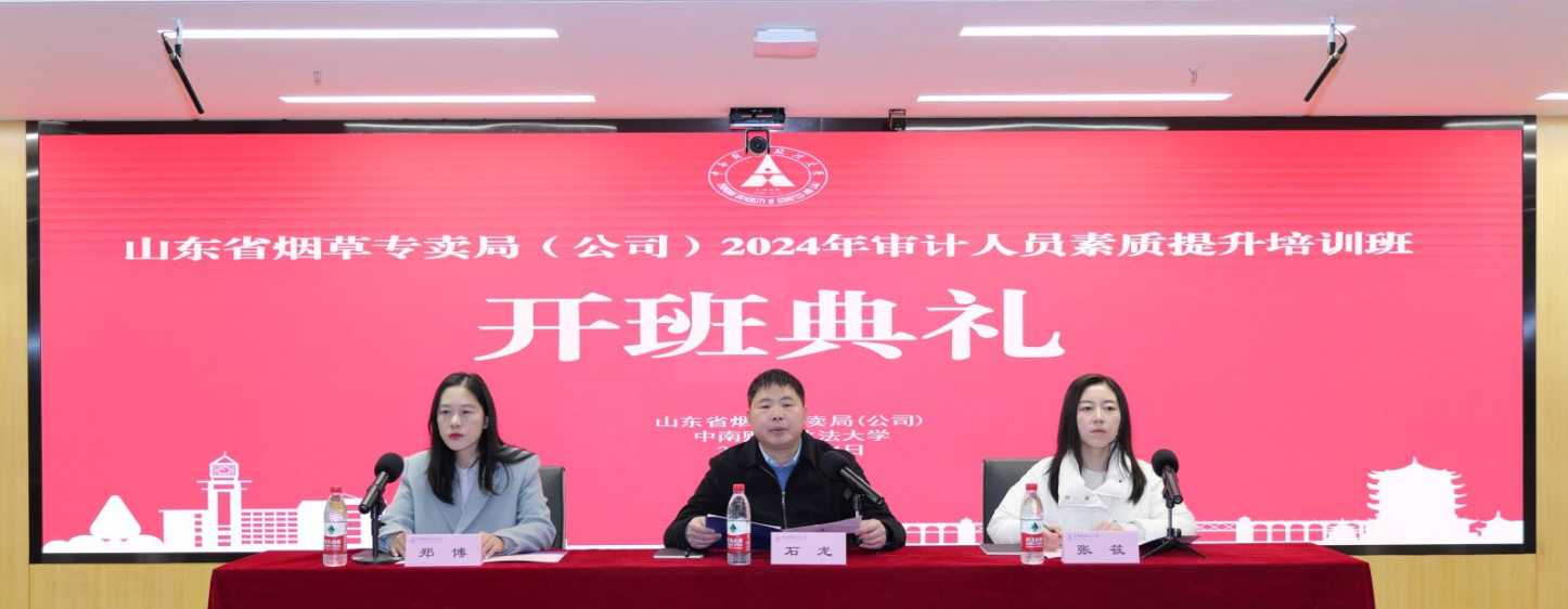 2024年3月4日上午,由山东省烟草专卖局(公司)主办,我校承办的山东省烟草专卖局(公司)2024年审计人员素质提升培训班在首义校区顺利开班,共有106名学员参加此次培训。学校继续教育学院副院长石龙,山东省烟草专卖局(公司)张筱老师出席了开班典礼。