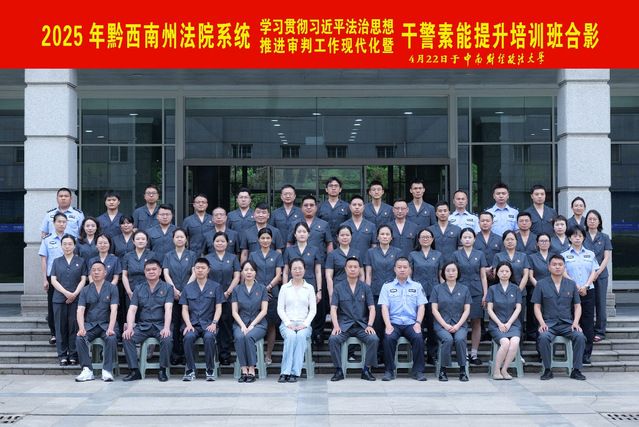 2025年4月20日至26日,黔西南州法院系统干警素能提升培训班在首义校区成功举办,来自黔西南州中级人民法院及下辖8个县级法院的50名骨干学员参加了本次培训。学校继续教育学院根据培训需求,精心设计了丰富务实的专题课程,课程涵盖以习近平法治思想引领全面依法治国新征程、AI热背后的知识产权争议与思考、刑事审判实务、民事案件审理等专题。学员们在结业仪式上纷纷表示,本次培训内容丰富、针对性强,学到了先进的经验和做法,对提升能力和水平具有重要的指导意义,下一步将结合工作实际,进行推广和应用。