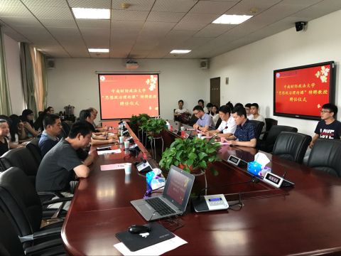 新闻网讯(通讯员 何慧 摄影 周正)7月5日,我校“思想政治理论课”特聘教授聘任仪式在文沛楼402会议室举行,中共湖北省委党史研究室副主任何光耀接受聘任。聘任仪式由人事部副部长应斌主持,校党委副书记王文贵、人事部人才办主任吕保华、马克思主义学院全体领导及2016级研究生共同出席。