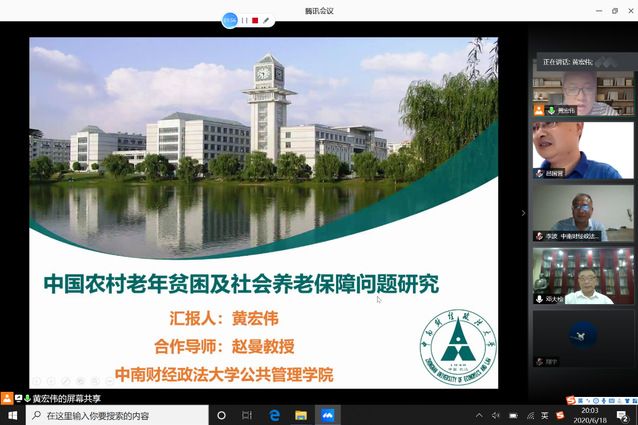 2020年6月18日晚,米兰电竞·(中国区)公共管理学博士后出站考核评审会在线上召开。武汉大学社会保障研究中心邓大松教授、武汉大学政治与公共管理学院副院长向运华教授、米兰电竞·(中国区)公共管理学院吕国营教授、李波教授以及博士后合作导师赵曼教授参加评审会,会议由武汉大学社会保障研究中心邓大松教授主持。本次评审对象为我校拟出站博士后黄宏伟博士。