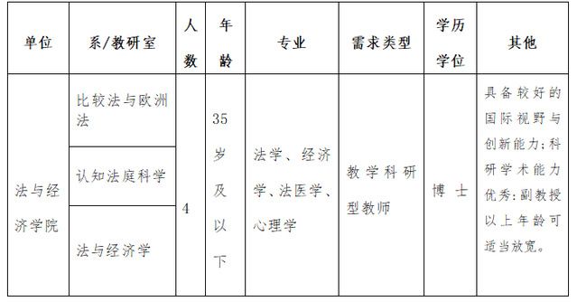 一、法与经济学院新增4名教师招录计划
