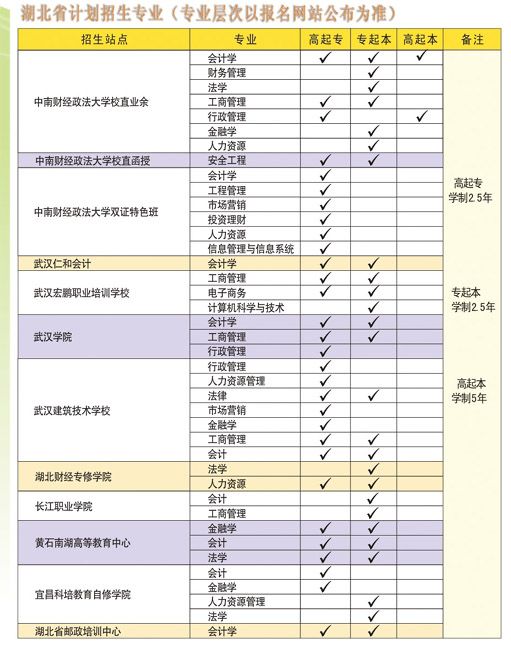 l 招生专业设置情况(专业层次以报名网站公布为准)