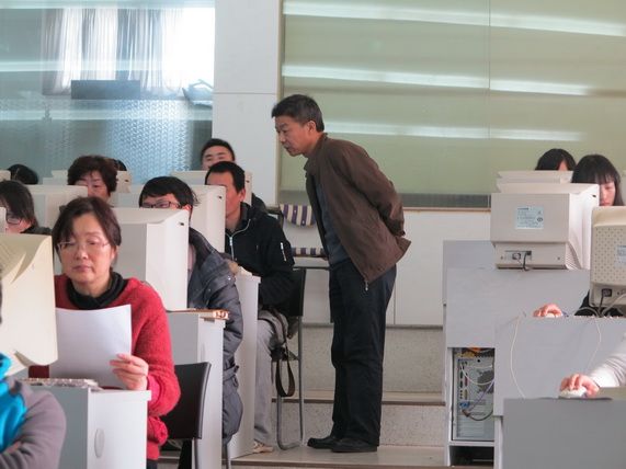为提高本次培训工作效率,工作人员将《网上申请注意事项》和《现场确认注意事项》两份申报操作指南印分发给各单位,并上传至自考工作群共享。自考办胡友还对两份操作指南进行了详细地讲解,并上机操作演示。到学员上机操作环节,潘晓明主任走入到各培训人员中间,反复讲解政策难点,指导上机实践,为他们解惑答疑。