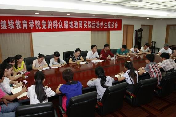 近日,继续教育学院党委为切实推进第一阶段教育实践活动学习教育、听取意见的深入,按照学校教育实践活动总要求和自定的实施方案,相继在全院开展“密切联系群众,转变教育服务职能”为主要内容的党的群众路线教育实践活动系列座谈会,认真倾听群众呼声。座谈的目的:一是突出主题、突出重点,以“为社会、为学生服务”主题,以各科室和窗口单位为重点,从工作和作风上解决好“务实”的问题,从纪律和道德上解决好“清廉”的问题。二是坚持开门搞教育,广泛吸纳各方面意见,坚持正面教育为主,注重思想认识提高。三是创新听取意见的方式和方法,加强分类指导,要根据学院具体实际召开形式多样的针对学生、培训、自考及全院职工的座谈会,突出实践特色,确保活动收到实效。四是从职工群众最需要做的地方做起,从群众最不满意的地方改起,让我们的职工对活动进行监督,让职工评议活动的成效,确保活动不走过场,不走形式,真正取得实效。