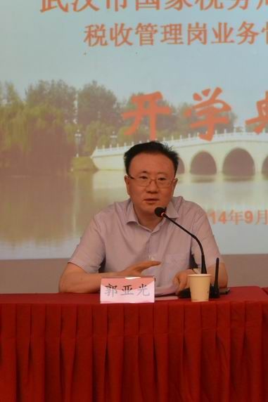 郭亚光代表武汉市国税局及全体学员对学校为此次培训所做的细致筹备工作表示高度的肯定和由衷的感谢。结合自身的实际工作,他指出了当前的税收征管工作存在着八个主要问题,并希望学员们利用此次难得的充电机会,以这些问题为导向,多学习、勤思想,增强解决问题的能力,不断提高工作效能。