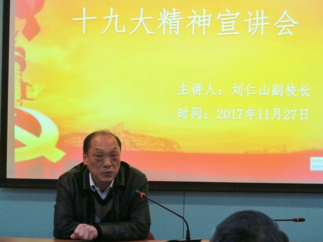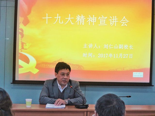 刘仁山副校长从大会主题领悟、大会成果总结、大会重要内容剖析等几个方面展开宣讲,对十九大报告进行了深入的解析。
