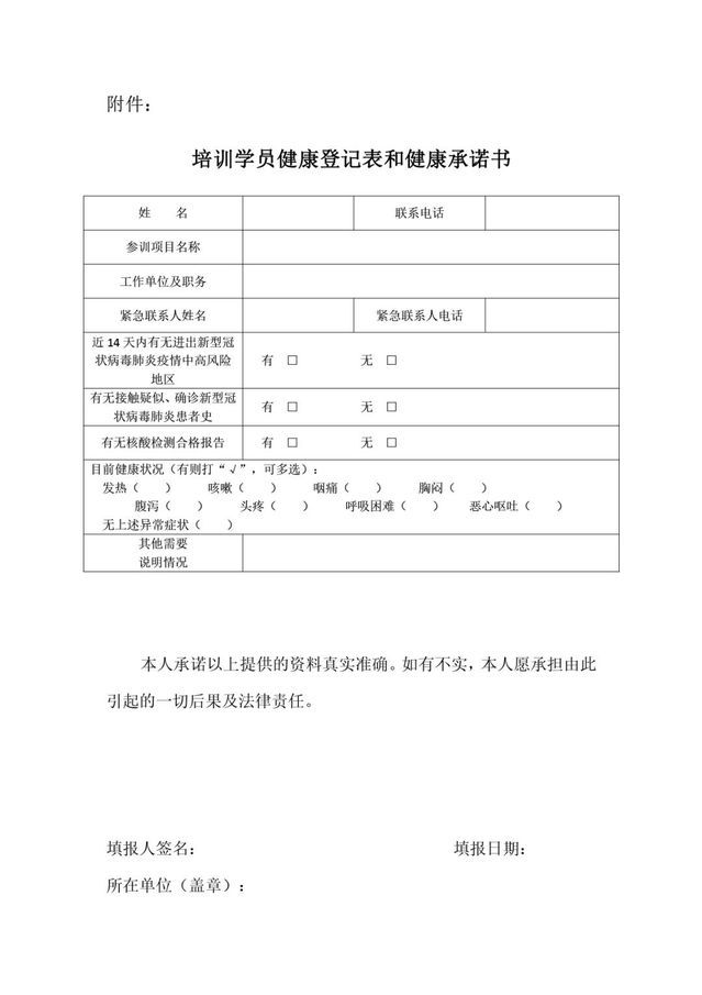 1、学员报到时,需提供最新健康码信息及14天内详细行程登记备案,并向校方提交健康承诺书;