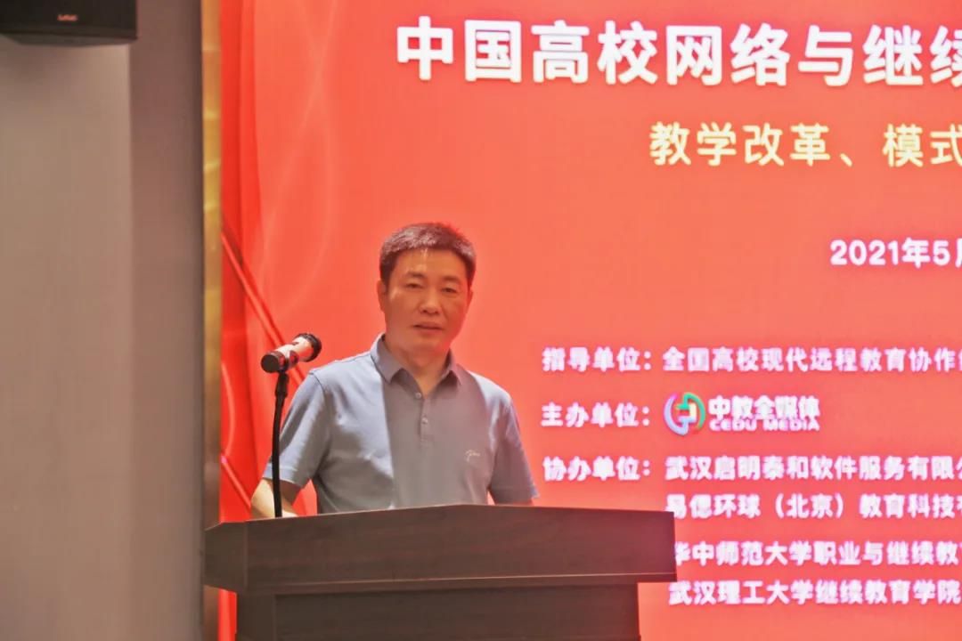 湖北省高等教育学会继续教育分会副理事长、米兰电竞·(中国区)继续教育学院院长刘建明在致辞中首先代表湖北省高等教育学会继续教育分会对研修班的召开表示热烈祝贺。他指出2020年湖北在抗击疫情的背景下,全省高等学历继续教育保持了快速增长和良好发展势头,湖北高校继续教育总体规模达到65万人,湖北高校的继续教育学院成为继续教育的中坚力量。刘建明表示,疫情防控期间,在线教育在高等学校教学中发挥了不可估量的作用,在线教育形式将成为继续教育的重要补充,网络化将是学历继续教育和非学历培训发展的必由之路。他希望中教全媒体继续充分发挥教育媒体的桥梁作用,为高校网络和继续教育事业的改革和发展提供更多更优质的服务,为建设新时代中国高校继续教育提供优质的媒体服务和创新发展平台。
