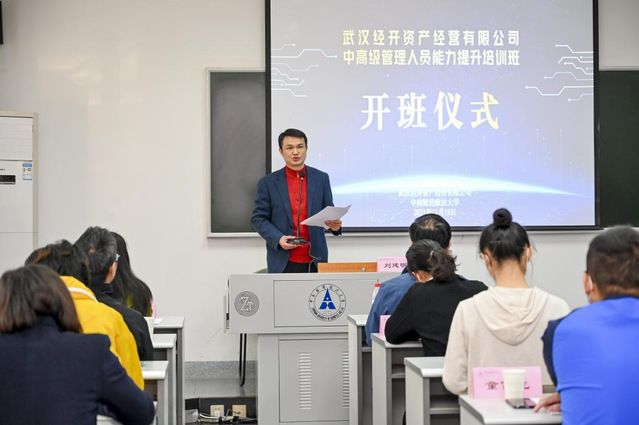 (通讯员 袁莉 田婧霓)为打造公司智能化运营管理的强劲引擎,实现高效的业务模式,持续加强管理创新能力、锻造资产管理品牌,11月18日上午,武汉经开资产经营有限公司中高级管理人员能力提升培训班在我校首义校区顺利开班,共有34位来自武汉经开资产经营有限公司及其子公司的管理骨干参加了本次培训。学校继续教育学院院长刘建明、副院长向传殿、武汉经开资产经营有限公司总经理宋珩出席了开班仪式,仪式由继续教育学院副院长石龙主持。