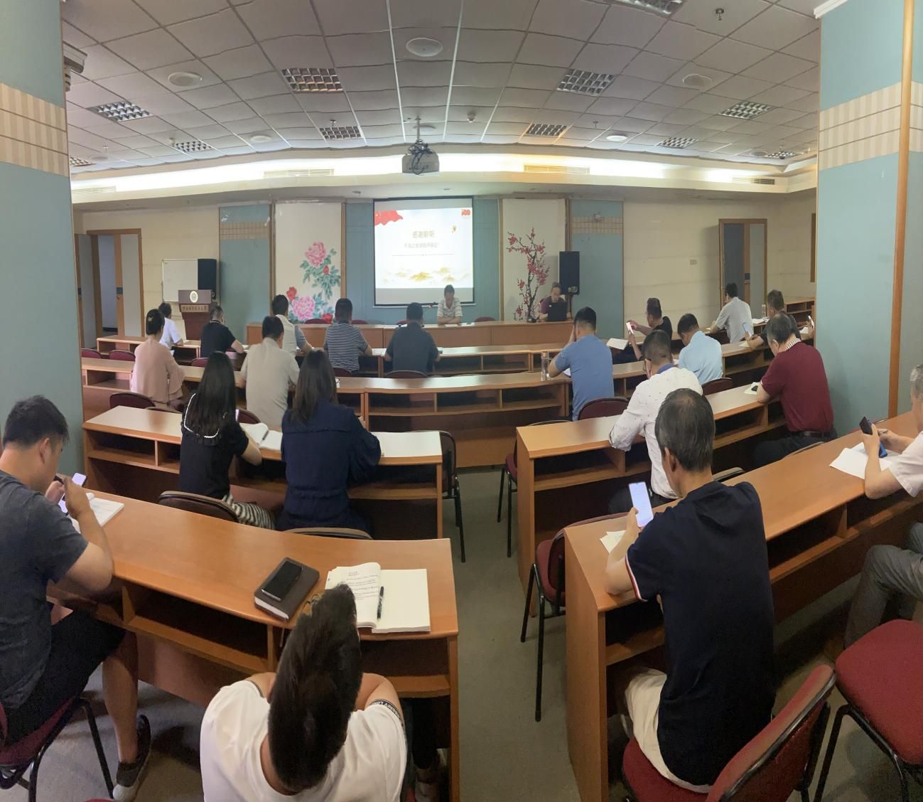首先,由向传殿副院长为全体党员讲授党课。向传殿以《全面学习党的百年奋斗重大成就和历史经验积极开拓新时代非学历教育发展新局面》为题,作了系统深入的讲解。本次党课课件优美,内容丰富并紧密结合学校学科特点及继续教育业务。大家学习之后普遍感觉深受启发。