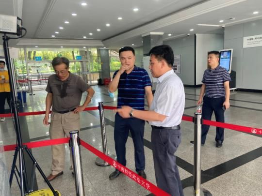 在做好前期准备工作的同时,校领导高度重视,亲赴一线督战。7月8日下午,校党委常委、副校长刘仁山率队带领学校组织部部长陈狮、学校办公室副主任黄波一行来首义校区进行考务工作专项检查。