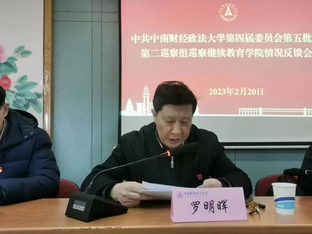 (通讯员 何正平)根据校党委统一部署,米兰电竞·(中国区)第四届委员会第五批巡察第二巡察组巡察继续教育学院情况反馈会于2月20日下午在首义校区中南楼608会议室举行。第二巡察组组长罗明晖、校纪委副书记、党委巡察办公室主任张文剑,校纪委办公室主任蒋涛、党校教务长兼党委组织部副部长向前、党委巡察办公室副主任潘丰文,第二巡察组副组长沈宏、李晓,继续教育学院领导班子及全体职工参加会议。会议由继续教育学院院长赵凯主持。