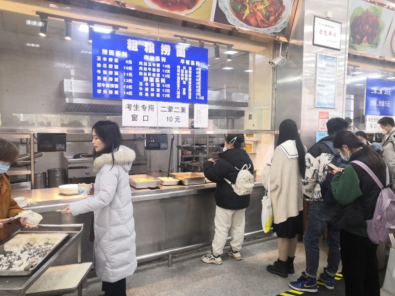 为使考生有充裕时间安心准备下午的考试科目,学校为考生提供了膳食服务,营养均衡、价格实惠的午餐,让考生在紧张的考试中感受到了学校的温暖。