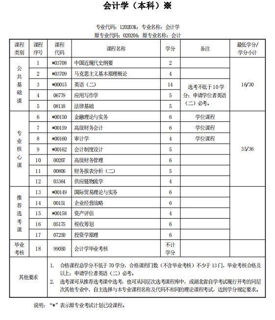 会计学120203K(本科)专业计划详图(2018版)。请以湖北省教育考试院官网公布的最新自学考试专业计划为准。