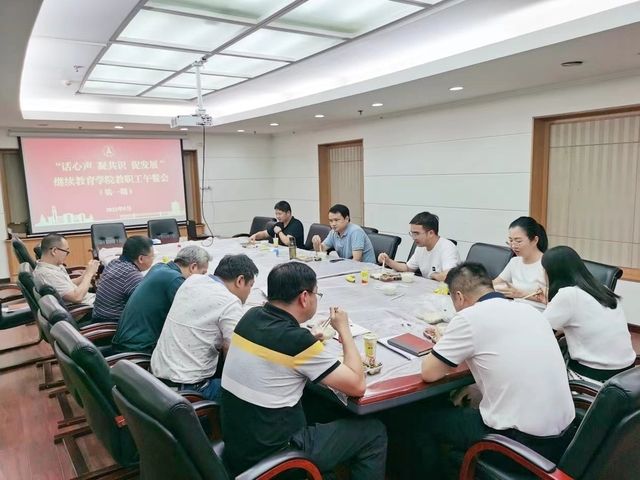 (通讯员 曾诚)为了运用好学习贯彻习近平新时代中国特色社会主义思想主题教育民主生活会的成果,营造良好的院内沟通氛围,促进各层次教职工的交流,继续教育学院于9月11日中午召开第一期“话心声 凝共识 促发展”教职工午餐会。全院领导班子与各科室负责人利用午餐时间,就“新学期相关工作建议”进行了深入思考和交流。