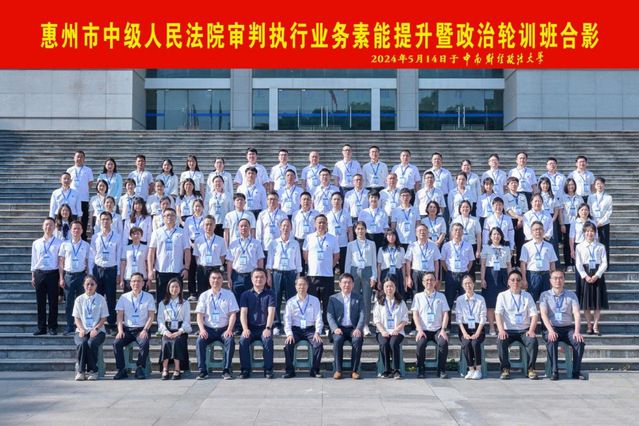 (通讯员 袁莉 郑博)5月14日至18日,由惠州市中级人民法院主办、我校承办的惠州市中级人民法院审判执行业务素能提升暨政治轮训班在首义校区圆满举行。惠州市中级人民法院党组书记、院长朱可胜,学校党委常委、副校长刘仁山出席开班仪式,仪式由学校继续教育学院院长赵凯主持。