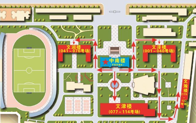 3.考生完成手机存放后,根据手机存放点出口处(中南楼一楼大厅南门)的楼栋考点示意图前往各楼栋考点核验身份信息后参加考试。
