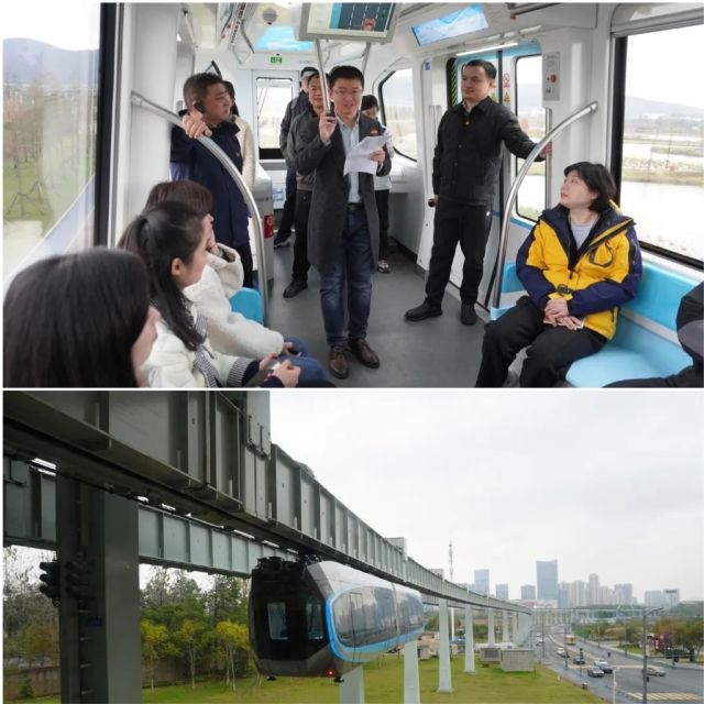在三方组织下,大家共同抵达光谷空轨九峰山站,乘坐研学专列探访光谷中央生态大走廊。在无人驾驶的列车上,伴随着讲解员生动的讲解,大家切实感受到光谷科技创新产业集群的日渐壮大并领略了荆楚文化和生态建设的无限魅力。