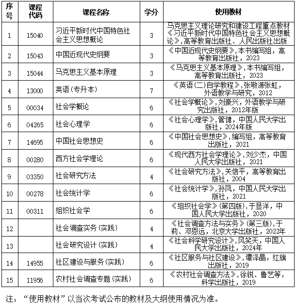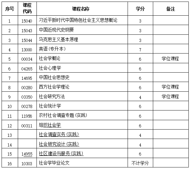 湖北省高等教育自学考试社会学(专升本)专业考试计划 专业代码:030301