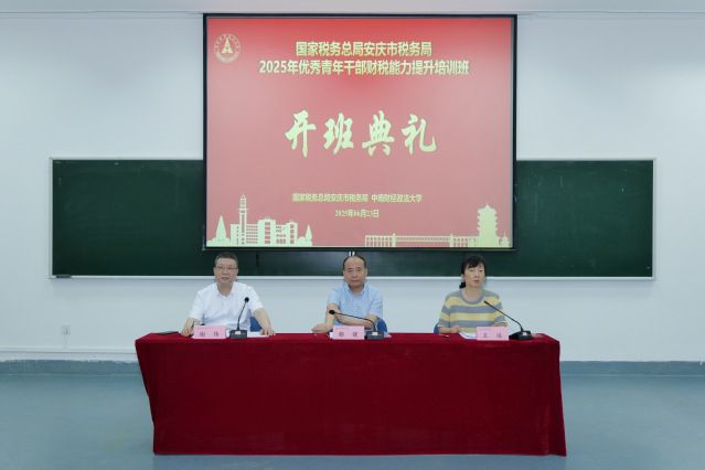新闻网讯(通讯员 袁莉 王澍)2025年6月23日至28日,国家税务总局安庆市税务局2025年优秀青年干部财税能力提升培训班在首义校区成功举办。安庆市税务局党委委员、副局长都健、学校继续教育学院副院长王延出席典礼并讲话。来自安庆市税务系统的50名优秀青年干部参加培训。