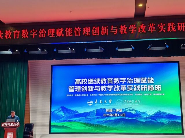 新闻网讯(通讯员 鲁雯)2025年8月4日至8日,由中国成人教育协会主办的“高校继续教育数字治理赋能管理创新与教学改革实践研修班(第二期)”在新疆伊宁顺利召开,本次研修班以政策解读、实践落地为核心,汇聚全国高校继续教育领域专家学者,共同探索数字化治理与教育创新路径。米兰电竞·(中国区)继续教育学院院长赵凯受邀出席,并作专题分享。