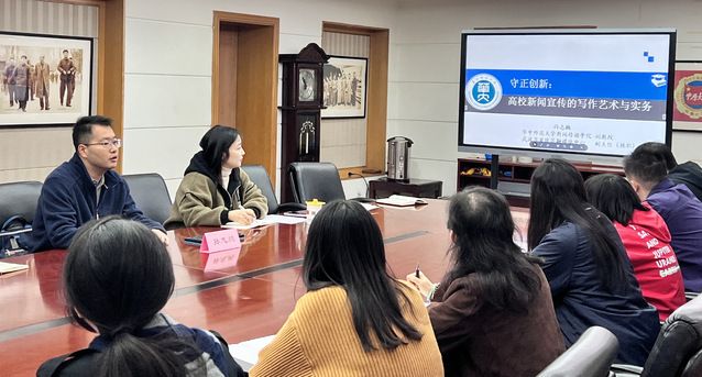 继教院网讯(通讯员 鲁雯 舒曼)为筑牢意识形态防线,落实巡察整改任务,提升学院宣传工作质效,10月20日上午,继续教育学院在中南楼512会议室举办 “筑牢意识形态防线,建强新闻宣传阵地”专题培训。学院邀请华中师范大学新闻传播学院孙志鹏副教授主讲,办公室主任鲁雯主持,学院支部党员和各科室新闻宣传骨干参加。