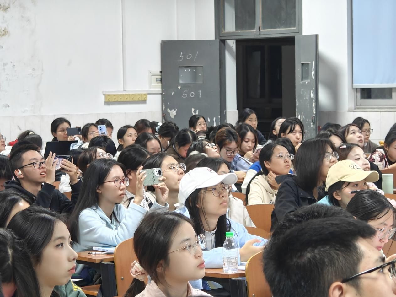 (通讯员 尤松)10月24日晚,我院携手统计与数学学院在文瀚楼501和文瀚楼403共同举办“数据赋能,洞见未来”新生学业职业生涯规划讲座,助力新生更快融入大学生活、明晰未来职业方向。统计与数学学院2025级辅导员周潇老师参加了本次活动。