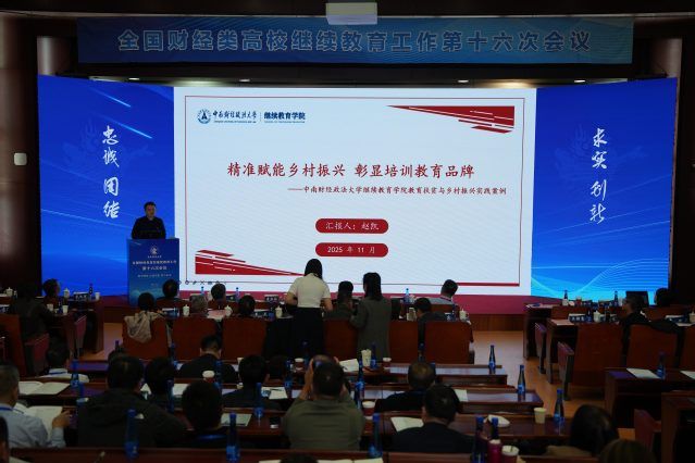 继教院网讯(通讯员 曾诚)11月21日至23日,以“数字赋能 协同创新 智引未来 —— 构建财经继续教育高质量发展新生态”为主题的全国财经类高校继续教育工作第十六次会议在中央财经大学召开。来自全国三十二所财经高校继续教育工作领域的嘉宾代表和专家学者参加会议,共同探讨数字时代财经继续教育的转型路径与发展机遇。我校继续教育学院院长赵凯受邀出席会议,并以“精准赋能乡村振兴 彰显培训教育品牌”为题分享我校教育扶贫与乡村振兴实践案例。